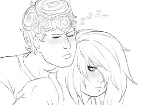His chest moved slowly, expanding and growing while we slept next to me. His pale and chubby face was slightly buried into the pillows, and barely any snores escaped his lips.. they looked so soft. His lips had this similar colour to a piece of bubblegum I’d probably get at a gas station, his brown hair was a total mess that was chopped and layered, but I adored it nonetheless.He’s always so tired, I mean, I don’t blame them. They have a lot on their mind, the world isn’t kind to him… I wish it were. I’d give it my all for him to just feel okay for one day. And I hope I do. He seems more relaxed when asleep than when he’s actually conscious and speaking. God, he was so pretty. Fuck, he was gorgeous. The way his hair falls over his eyes, the way his scarred arms held himself in their sleep, it was all so soft and pure.I’ve never felt this kind of thing, and it feels like I’m dying. I know I’m not, no fucking shit I’m not, but it feels like what I believe it’d be like. I wish he knew how worthy he was, I wanted him to acknowledge how perfect they were.But, he doesn’t. He’s just sleeping, and it’s okay. I should too, but with it being around… 4 AM? I think? Whatever, it was late, and I should be up soon. I fucked up my own schedule, but for him it’s okay. I’m content with just watching him relax.His body turned, and I felt his nose bump and smush into the crook of my neck, and I couldn’t help but melt. My stiff arms needed to hold him, I needed him to feel the intense care I felt inside for him. I know he knows I love him, but I never want to stop expressing it with my touch. I can’t believe I’m even with him, thank God I asked him out. I guess I could thank Melone for showing me how the hell a computer worked… but Bri was more important to thank; more important to love.At least I don’t have work tomorrow, I’ve found myself hating that career choice more and more ever since they showed up in my life and in my arms. Why did I ever decide to run away? Why the fuck did I decide to latch onto the dangerous mafia lifestyle? I thought it was my purpose, I really did. I’m strong for it, I’m worthy enough of so much.. especially with my White Album. And yet, whenever he kisses my face and says something so cute and so stupid, it felt like my true purpose was being his.Maybe someday, the boss will cease to exist.. and I can leave and be with Bri full time. But, I have to keep my mouth shut about my job near him and make sure nobody puts his hands on him. It’s a pain in my fucking ass to love them, but I’ll do it anyways no matter what. I wish I chose a better life for myself, I’m just glad he isn’t involved… I hope. I swear to God I’ll freeze the limbs off of anyone who— Shit— I think he’s awake. His whining, his pale fingers latching onto the fabric of my shirt, it felt like some clear sign.His voice, it spoke to me. The sluggish tone slipped from his mouth and it made my heart beat quicker than it ever did. I felt warm, although my skin was freezing cold. And he asked what I was doing awake. His tone, God, his tone. He was so tired, so barely conscious and it just made me anxious to say anything back.But, I did. I let my rasped words hit him back gently, and he just accepted it. I just couldn’t sleep. And I still couldn’t, damnit. I doubt he could go back to his slumber too, he always struggled to head back to bed after waking up… damn you, Bri.I guess I’ll watch him sleep another time.
