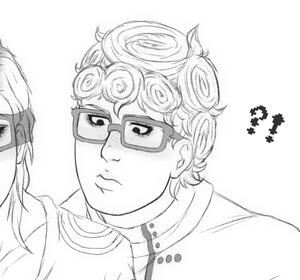 Ghiaccio is 5’7 (170 cm i think), and has a lean/slightly buff build. He’s normally slouched due to bad posture. He has naturally blonde hair, but dyes it blue due to Melone convincing him after he dyed his hair purple. The bridge of his nose has very faint freckles scattered along it, and has braces lined across his teeth, and his glasses are unscratched with no damage. (his glasses are precious to him) When not in his attire for La Squadra, he prefers to wear even more comfortable clothes. He likes comfort over luxury. He’ll wear graphic tees, mostly related to video games or pop culture. His nails are painted pink and blue, they were painted by Sonno due to them not enjoying the texture of nail polish on their own skin.. so Ghiaccio offered for his nails to be the canvas. He has one homemade bracelet always around his wrist, which was also made by Sonno.