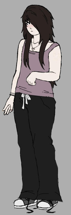 Bri (Sonno) is 5’3 (160 cm i think), with a chubby build and curved figure. Their arms and upper thighs have visible and pale old scars, and their face (mostly their cheeks and nose bridge) have freckles scattered all over. His hair is long, reaching above his rear and in an outgrown style that’d fit a certain style in the near future (emo mid-2000’s). They have slightly visible eye bags under their eyes, and have dark circles around them. They wear clothes similar to Ghiaccio, preferably even wearing his clothes. They enjoy comfort over luxury, and are always seen wearing a small heart-shaped necklace across their collarbone. They constantly have a coiled hair tie around their wrist, usually on his left.