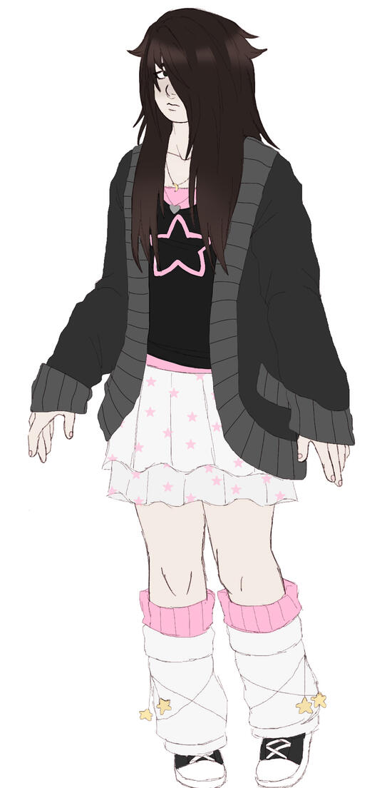 Bri (Sonno) is 5’3 (160 cm i think), with a chubby build and curved figure. Their arms and upper thighs have visible and pale old scars, and their face (mostly their cheeks and nose bridge) have freckles scattered all over. His hair is long, reaching above his rear and in an outgrown style that’d fit a certain style in the near future (emo mid-2000’s). They have slightly visible eye bags under their eyes, and have dark circles around them. They wear clothes similar to Ghiaccio, preferably even wearing his clothes. They enjoy comfort over luxury, and are always seen wearing a small heart-shaped necklace across their collarbone. They constantly have a coiled hair tie around their wrist, usually on his left.
